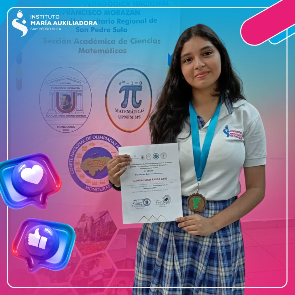 Hoy felicitamos a Camila Esther Rauda Cruz por este importante reconocimiento, confiando en que será solo el inicio de una trayectoria llena de éxitos y bendiciones. Que su ejemplo inspire a muchas más jóvenes a luchar por sus metas y a brillar con la luz de sus talentos.